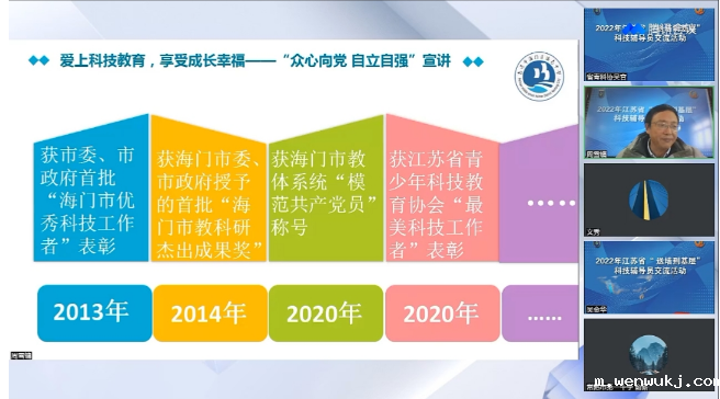 12月12日上午,活动首先由南通市海门区海南中学周雪镛主任作《众心向党自立自强》宣讲,以自身经历讲述作为一名党员教师,从教生涯30年来,不忘教育初心,介绍了“助力学生发展”、“促进品质提升”、“推动专业成长”、“合作取得共赢”、“成果普及推广”五个阶段的科技教育发展历程,周主任真切表示“我爱科技教育活动,它让我和学生找到了一种生命绽放的方式。在未来的日子里,我还要带领学生向着更高的目标迈进,为培养更多的具有科技创新素质的优秀学生而不懈努力!”
