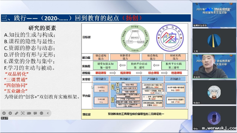 江苏省启东中等专业学校创新创业发展中心姚亮副主任作题为《中小学科创教育的成长逻辑——缘起认识践行》讲座,分享了创新教育教学实践体系、带领学生开展科技创新和科技志愿服务的经验等。