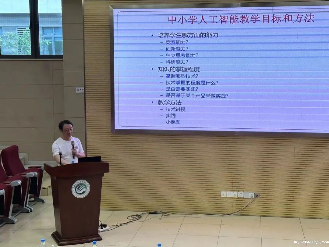 东南大学认知智能研究所所长漆桂林教授为与会专家和委员们作了《人工智能教育与ChatGPT》的学术讲座。在讲座中,他结合人工智能的基本原理及发展方向,从中小学人工智能教育、如何有效利用人工智能进行常规教学等方面进行了指导。