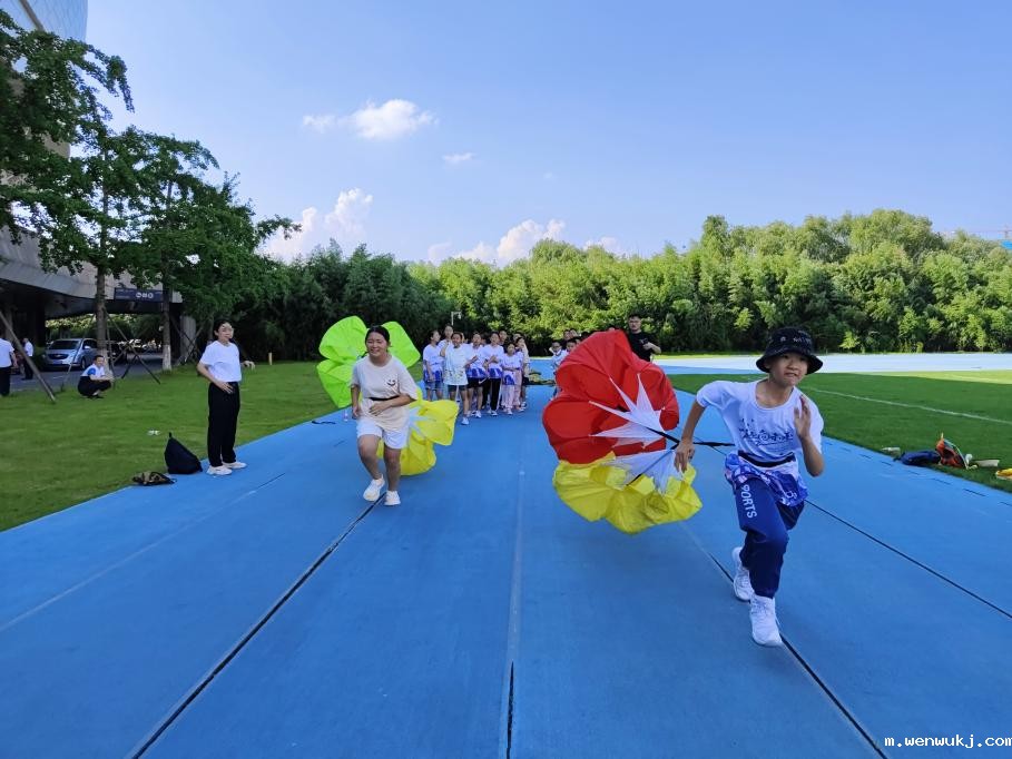 学生们分组体验阻力伞