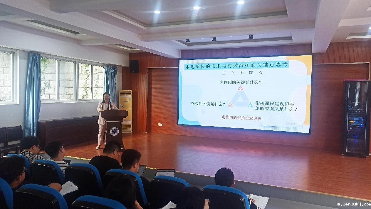 本次培训班邀请了镇江市宝塔路小学副校长杨洋,杨校长带来了《规范青少年科技教育培训课程实现校内外有效衔接》讲座,杨校长向参培学员介绍了什么是课程,分享了校内课程的特点和学校的需求,针对校内外科技教育衔接问题提出了自己的看法。