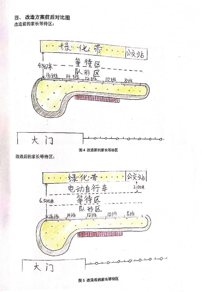 来自南京市雨花外国语小学的周同学为我们带来了“北斗助力美好校园—家长等待区改造方案设计”作品,他的设计思路是针对机动车与非机动车的尺寸,通过统计普通车型的车身长度、宽度,利用北斗测距对校园绿化带区域划分为电动自行车、家长等待区、小朋友队形三个区域,以营造一个良好规范的放学环境。