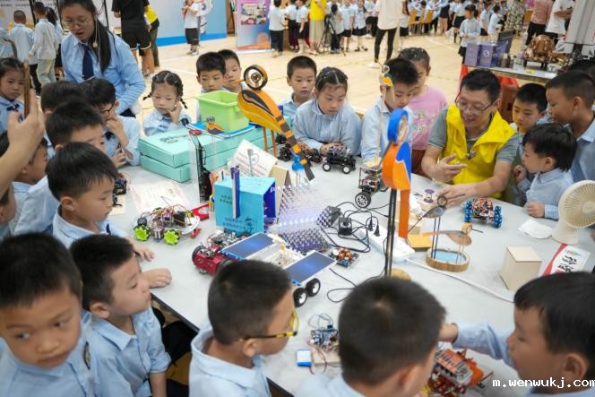 在校园科学节的现场提供了展示互动区、科学秀表演区两个区域。在展示互动区参加活动的单位提供了投球运动会,3D打印榫卯结构制作体验,热缩原理,卫星加油站,小小搭建师,竹鸟制作体验,小小天文家,模拟飞行家,小小飞行家,动手又动脑,机器人舞蹈家,千里眼,3D打印机展示,院士信箱活动,无人机展示等活动供师生体验,寓教于乐的同时也让学生们亲身体验科学的魅力与美好。在科学秀表演区也进行了不会破的烟雾泡泡、火焰掌、超大绳索泡泡、消失的水、悬浮的海洋球等精彩的演出,孩子们热情高涨,积极踊跃上台参与零距离互动体验,尽情感受科学的神奇和魅力。