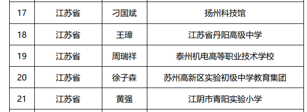 由中国青少年科技教育工作者协会举办的2022年高级青少年科技辅导员专业水平认证工作于近期结束。经资格审查、笔试、业绩成果评审及答辩,南京田家炳高级中学张雪峰、江苏省苏州第一中学校郭士安、扬州科技馆刁国斌、江苏省丹阳高级中学王璋、泰州机电高等职业技术学校周瑞祥、苏州高新区实验初级中学教育集团徐子森、江阴市青阳实验小学黄强7人通过2022年高级青少年科技辅导员专业水平认证,今年通过人数位列全国第二。全国各省通过认证数量仅为69人。