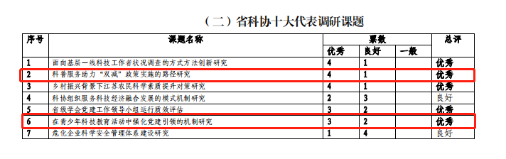 为深入贯彻党的十九大及十九届历次全会精神,全面落实省第十四次党代会部署安排,充分发挥科技创新在创新发展中的引领作用,进一步推动高水平科技智库建设,团结和服务广大科技工作者履行“争当表率、争做示范、走在前列”光荣使命、为谱写“强富美高”新江苏现代化建设新篇章积极建言献策。betway软件秘书长吉春鹏和南京外国语学校副校长朱征积极参与省科协十大代表调研课题工作,在为期一年的时间内,顺利完成立项开题、调研访谈、中期报告、结题汇报等一系列工作,且在今年的结题评估中《科普服务助力“双减”政策实施的路径研究》和《在青少年科技教育活动中强化党建引领的机制研究》两个课题均被评为优秀。