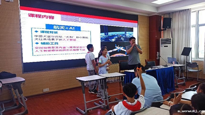 其次,马勇副教授邀请了四位小学生扮演太空飞船和核心舱,让学生理解在太空中实现对接需要人工智能自动控制,进而介绍了人工智能的发展历史和人工智能的特点。