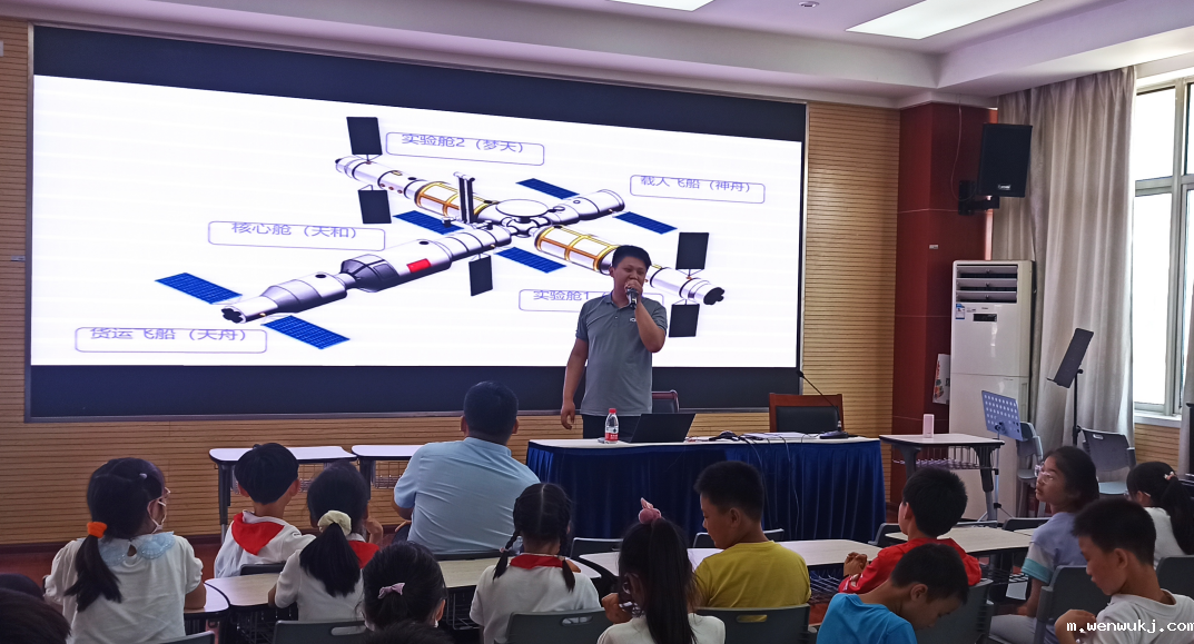 首先,马勇副教授播放航空航天宣传视频引发小学生们的共鸣,采用提问的互动方式普及航天航空基本知识,放映生动的“天和”运行动画使小学生们身临其境地感受“天和”运行,引导思考“天和”核心舱和太空飞船的交汇对接方式。