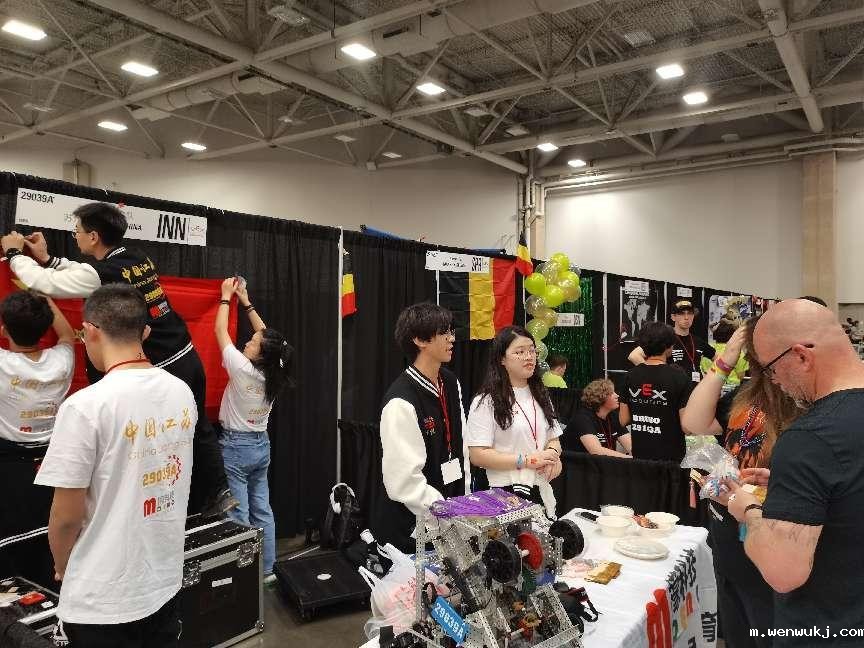 4月25日,世锦赛的首日场馆按时开放,来自世界各国的赛队在规定时间内进入场馆,排队等待报到、领取材料、检录机器人。我省队伍在国际区域报到完毕后,在场馆内找寻并布置队伍展位,队员们充分发挥自己的设计理念,通过国旗、徽章、彩条、海报等各式各样的物件打造出梦幻展位。在这个过程中,队伍中的外联选手也迫不及待的携带着中国特色小礼品奔波于各个赛队展位,开展热烈的交流,展示中国风采。